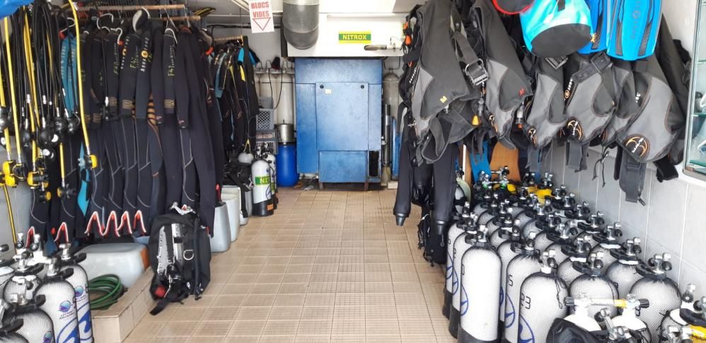 Aqualung & Apeks equipment, changing room, two compressors, 280m³ of buffer tanks, Aqualung, Apeks, Suunto & Xdeep shop and technical center